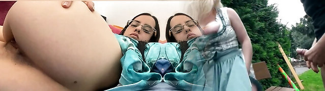 Two Lesbian Stepsis Very First Time To Taste A Huge Cock