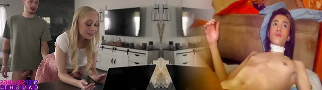 Petite Blond Braylin Bailey tempted her step-brother to drill her mouth but got caught when he cum