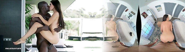 Bare brunette with ample assets likes to get inserted with a big, black dick, until she cums