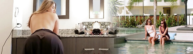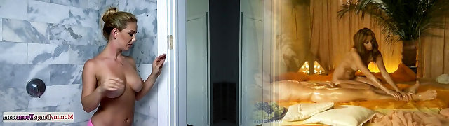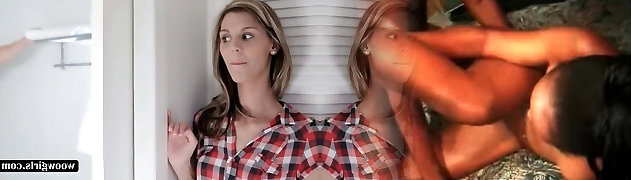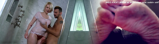 Nasty blondie Carolina Sweets is stagging on her black neighbor taking a shower