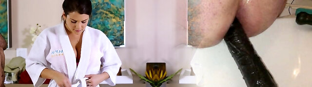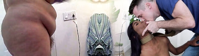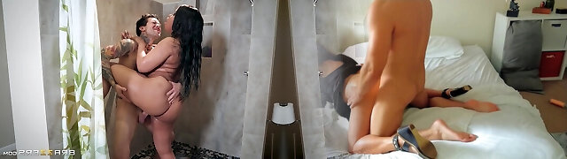 Rough anal with ass-to-mouth thru a crevice in bathroom curtain (Adriana Chechik)