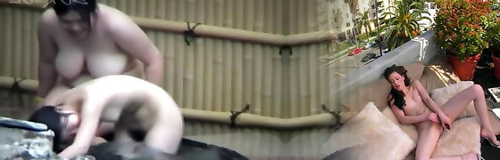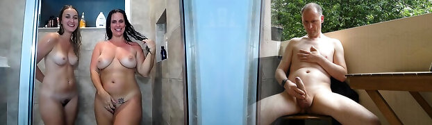 Thick nipple tits and hairy pussies on shower voyeur web cam 03046