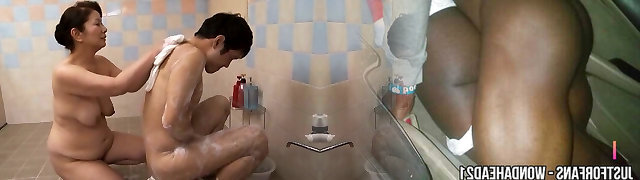 Plump Mature Japanese Chizuru Iwasaki Jerking and Blowing in the Shower