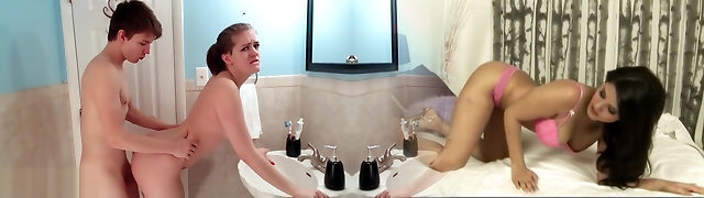 Raunchy sex and cum shot my thin sister in the bathroom p5