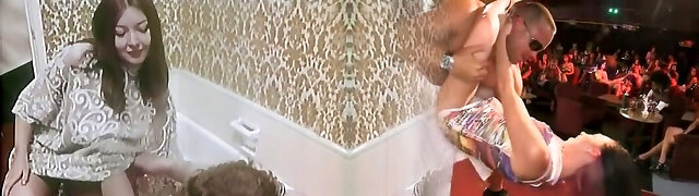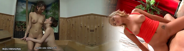 Two Asian girls are licking and rubbing each others cootchies in a public bath