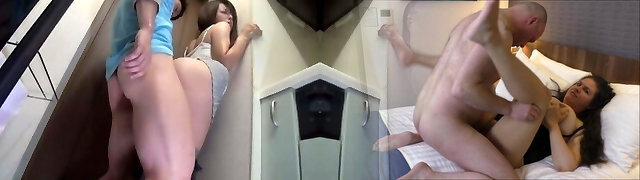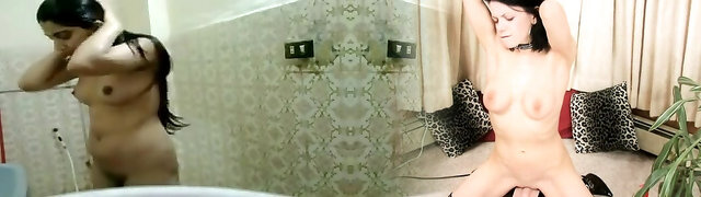 Dark-haired girlfriend Mena Li gets her boyfriends cock in the douche