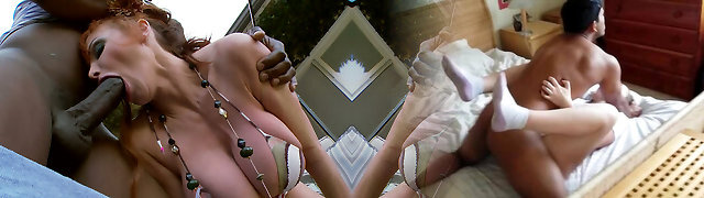 Crazy mommy with red hair and huge tits pleases super-naughty black guy