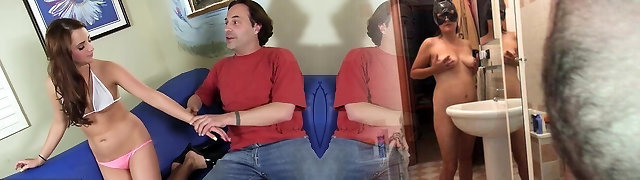 Boy fucks his towheaded stepsister with small tits in a bikini