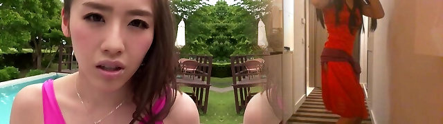 Sleazy youthfull Japanese mega-cockslut in crimpal's boyfriend swimsuit is about to have the horniest trio-way of her life with two super-naughty studs in an outdoor p
