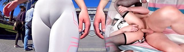 A flashy cameltoe around the city