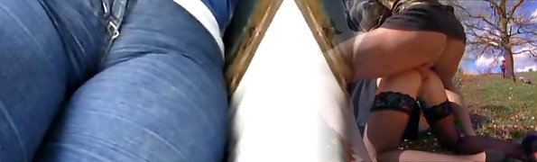 Big-titted babe likes cameltoe view