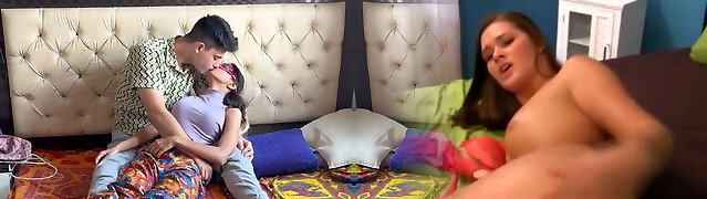 Oh no! Teenager girl College Girl discovers her stepsister fucking with her stepfather when she gets home
