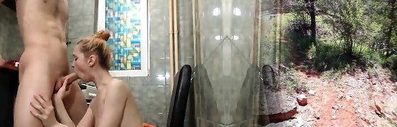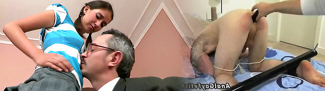 Bashful teen with pigtails blows big cock of her grey haired Boyfriend