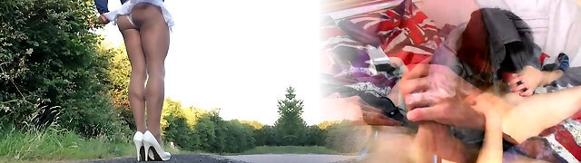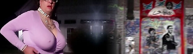 DeeDeeSlut69 - Out in her Ebony Lingerie and purple T-shirt in Public