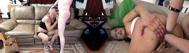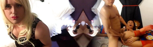 Crossdresser VS Amateur Teens: Horny double vaginal