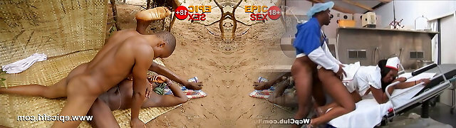 Unbelievable breasty black girl having an interracial fun