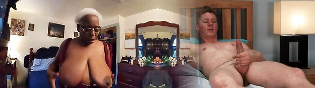 Ebony cougar milks her huge tits on cam