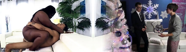 Luxury ebony queen enjoys big white dick and gets sopping in jizz