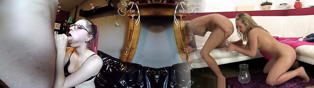 Gorgeous trap tranny rides blonde honeys ass