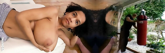 Young mega-bitch masseuse mesmerized by her client's monstrous black dick