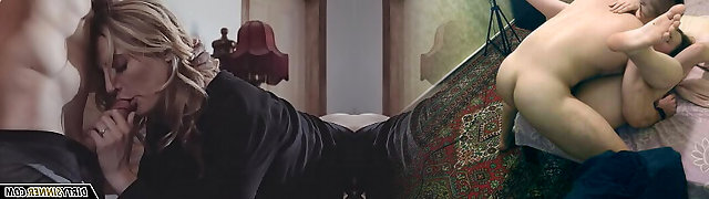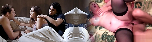 There is only one bed in this house, so Milf, her son and his girlfriend will have to lie down in it together