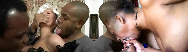 Standing on knees black head takes intense cock deepthroat for ultra-cute head