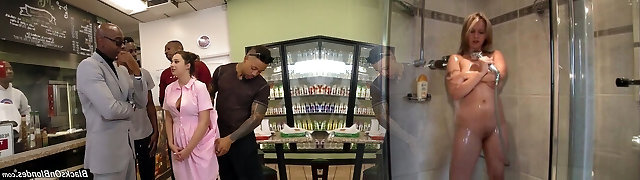 Several dark-hued studs smash all holes of sweet looking waitress Elektra Rose