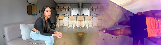 Slender latina with natural boobs blows ginormous cock and gets poked