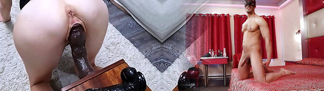 Phat Bottomed Slut Loves Huge Dildos In A Doggystyle Rail