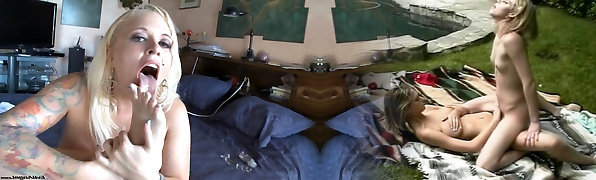 blondie frigs herself outdoors
