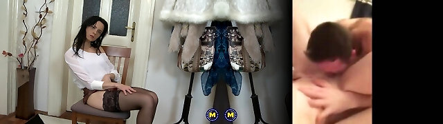 Cougar Ellen Million takes off her black lingerie to fap
