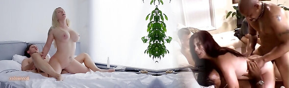 Two massive ebony dicks for blonde breezy Cali Carter that loves anal