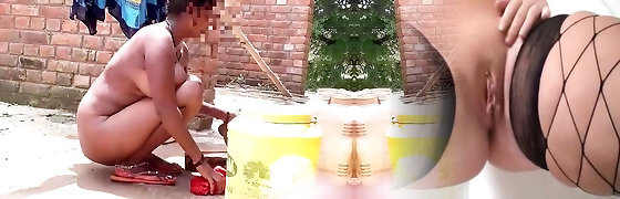 wow... epic desi village gal bathing outside