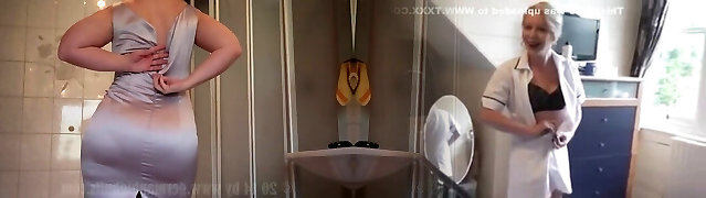Glorious young nurse Layla shows off her white panties and sweet looking coochie