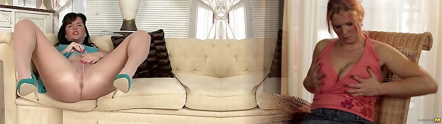 Likable hottie with pale tits spreads gams in her nylon stocking to go solo