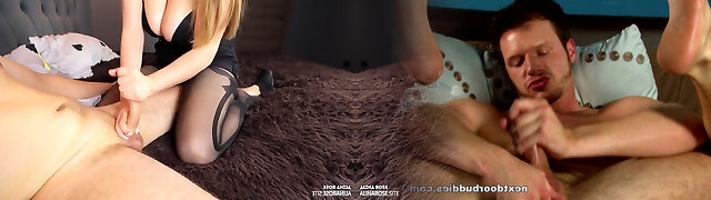 Teenage Girlfriend With Big Tits Handjob And Footjob In Pantyhose