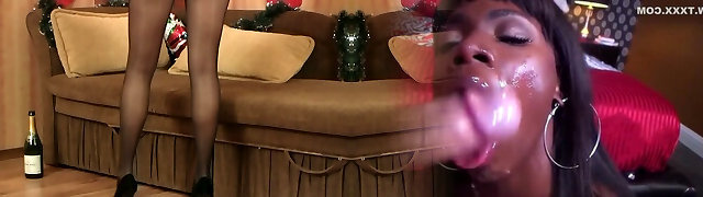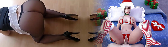 Nice brunette Jay in Christmas costume exposes her legs in pantyhose