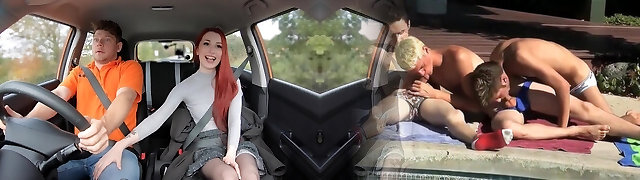 Small bra-stuffers redhead Gigi Rouge moans while getting screwed in the car