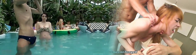 Slender japanese stunner is getting harshly fucked by the swimming pool