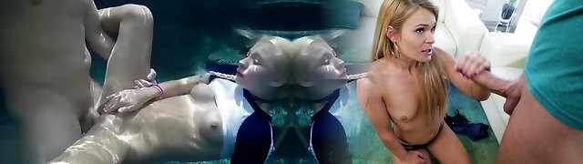 Petite blond damsel Piper Perri gets her pussy rammed by one huge pool boy
