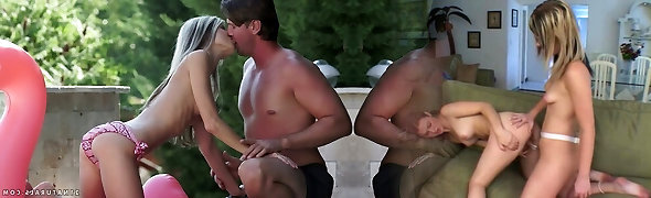 Four white blonde sluts and one BBC for them to ravage at the pool