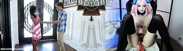 Alluring ebony hottie Demi Sutra is fond of rock-hard thick white cock