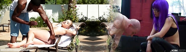 Nude dark-hued babe Lala Ivey is swimming in the pool before a wild sex with her milky neighbor