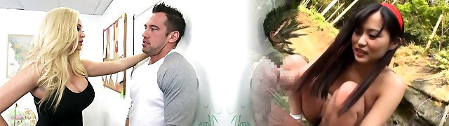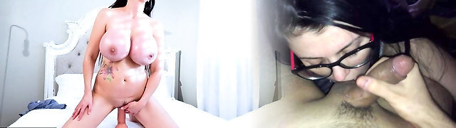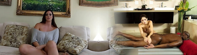 Cuckold hubby watches busty Asian wife Brenna Sparks riding a BBC