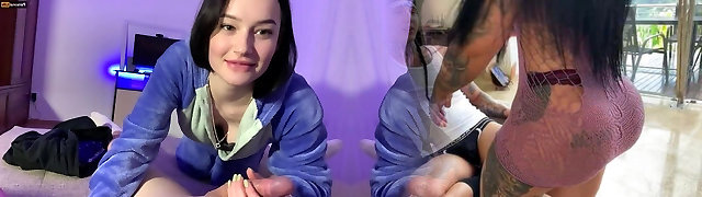 Russian MILF and Stepsister Share a Facial in Threesome Action