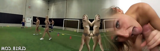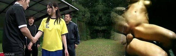 Japanese soccer teen group-fucked on the football field