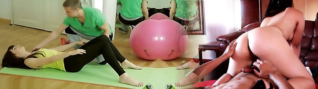Pilates Trainer Is Touching His Nymphs While Teaching