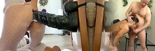 Horse Size Dildo for my tight bootie while I wear Fishnet body stocking