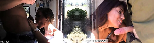 Wild Milf slut swallow cock in moving truck