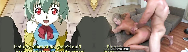 Cute hentai sucking stiff spear and swallowing cum